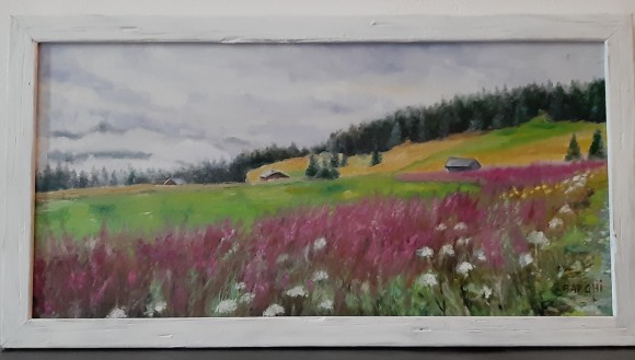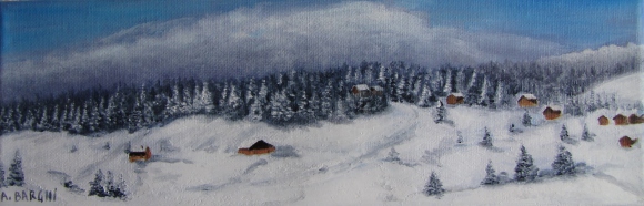 Huile sur bois - Col des Saisies - Encadré - 43,5 x 23 cm -