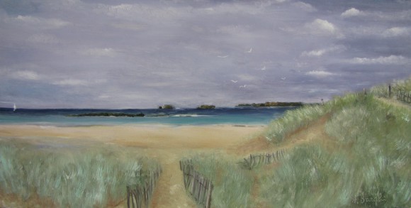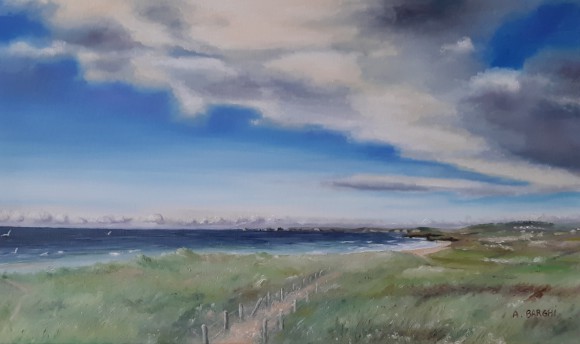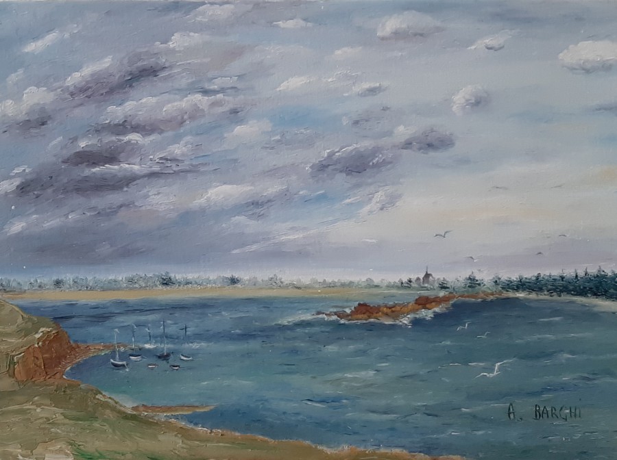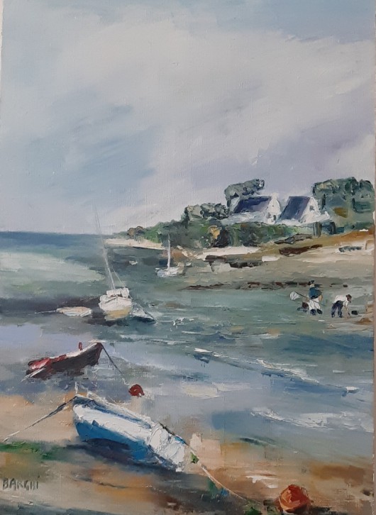 Huile sur toile - Crozon - Au loin, les tas de pois - 55 x 33 -