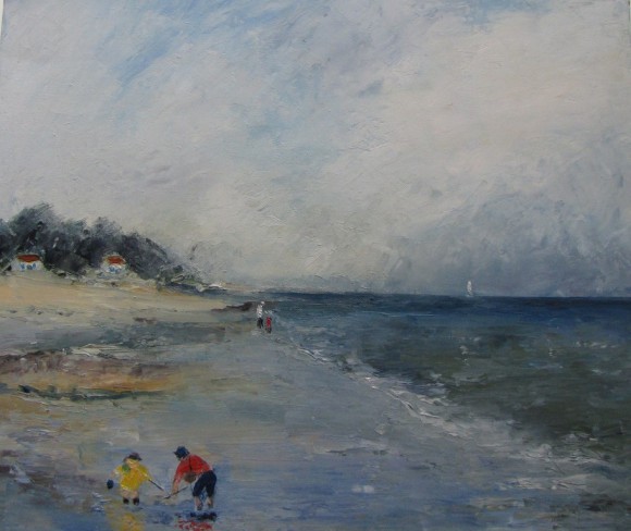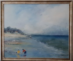 Huile sur toile - couteau - Pêche aux coques - 61 x 51 - Encadré -