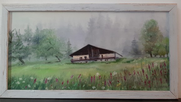 Huile sur toile - 43 x 33 - Vieilles fermes à Megève -