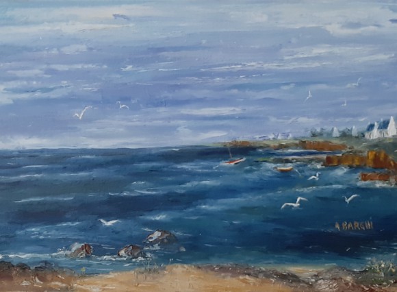 Huile sur bois -35 x 16,5 cm -Presqu'île de Crozon -