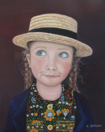Huile sur toile - 46 x 38 -Petite fille au canotier - Offerte