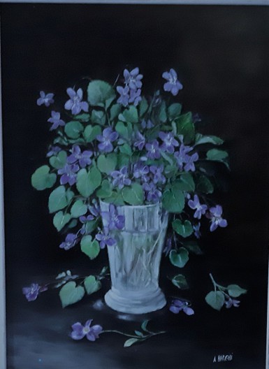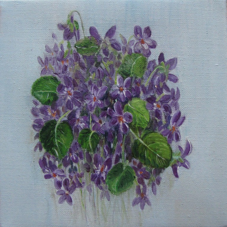 Huile sur bois - Les violettes - 36 x 45 - bois brut blanc -