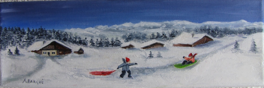 SAVOIE - LES SAISIES - Partie de luge - 30 x 10 cm -