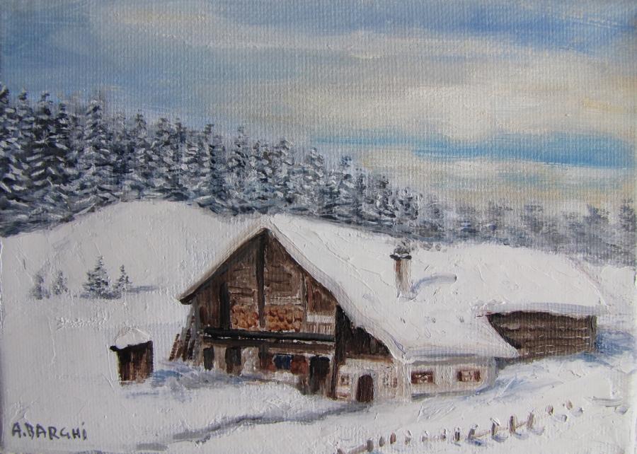Huile sur toile -Savoie - BEAUFORT Vieille grange - 46 x 38 cm