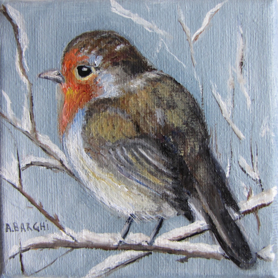 Huile sur toile - Joyeux rouge gorge -10 x 10 cm
