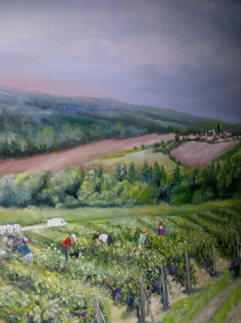 Huile sur toile - Vendanges à Loches-sur-Ource - 46 x 55 -