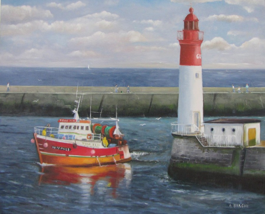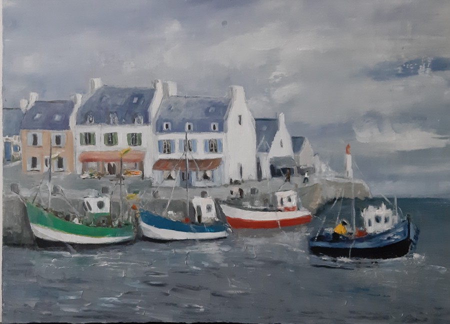 - Huile sur toile - 61 x 50 - Port du GUILVINEC - 17 h Retour de la pêche