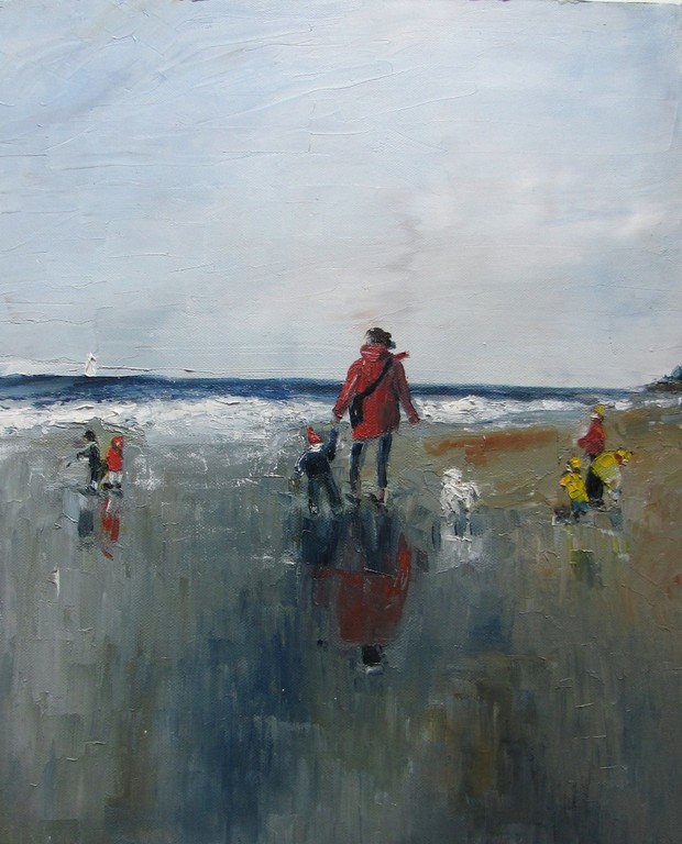 Huile sur toile - Couteau - Promenade dans le vent - 46 x 38 cm -