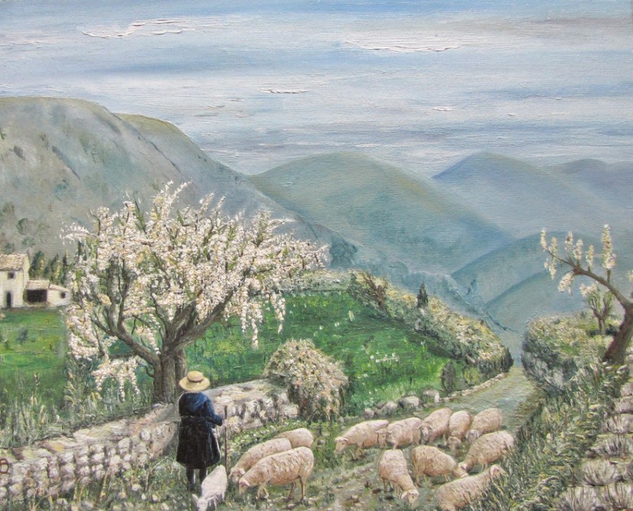 Huile sur toile - Troupeau en Luberon - 33 x 41 -