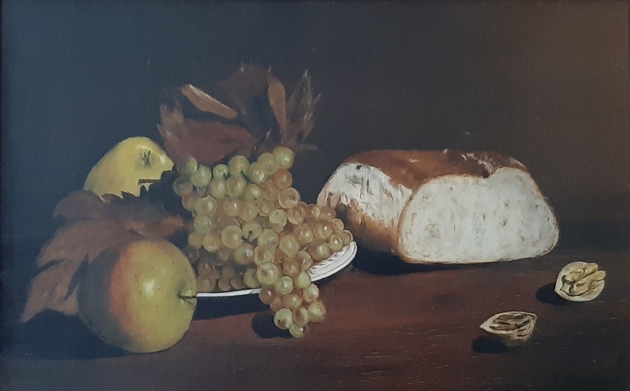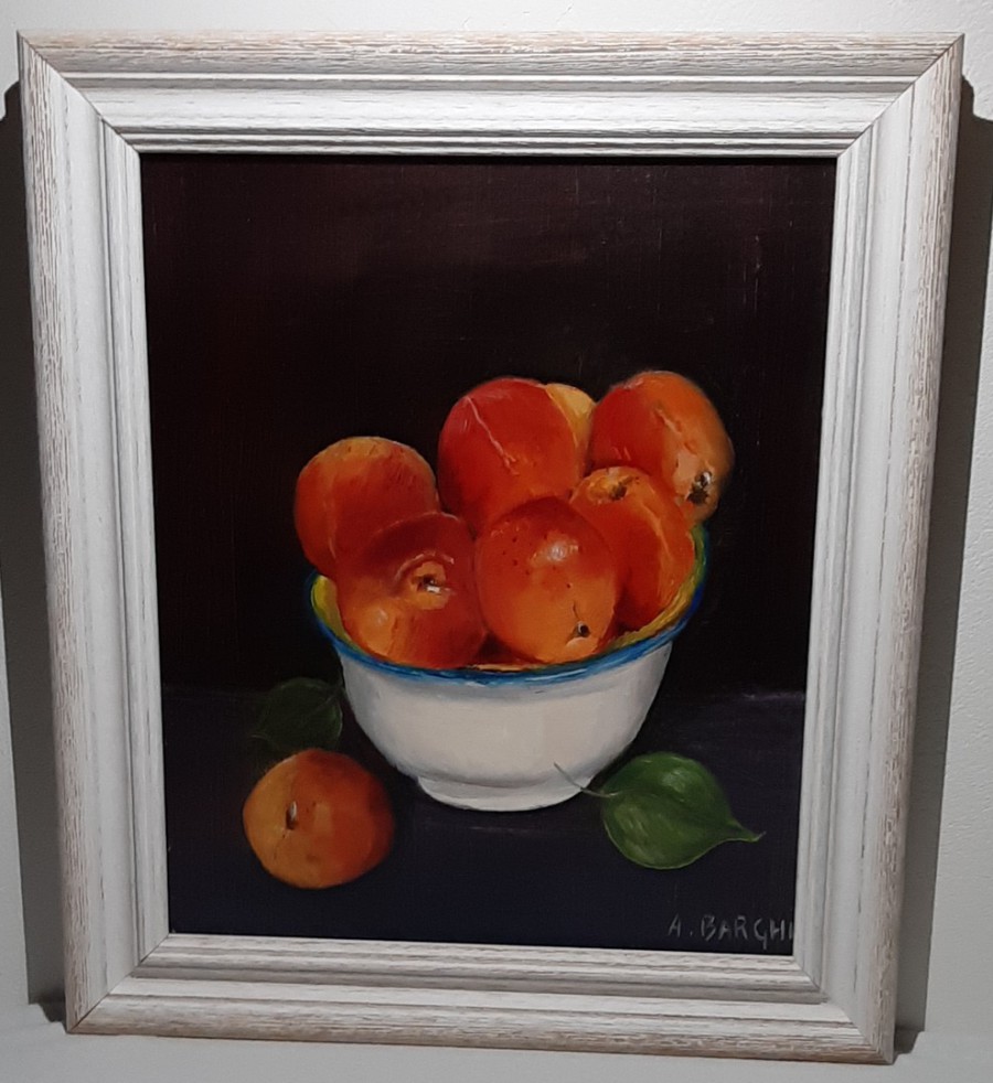 Huile sur bois - Abricots - 26 x 26 - Encadré -